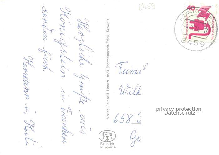 74049231 alte Postkarte Koenigstein Oberpfalz Ortsmotiv mit Kirche Freibad Panorama postalisch gelaufen Erhaltung siehe scans [FriedD77] KatCode: 11110009371135