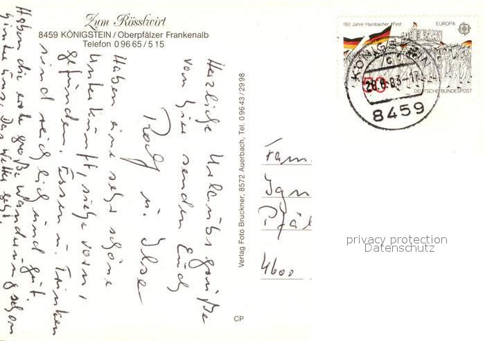 73056891 alte Postkarte Koenigstein Oberpfalz Zum Roesslwirt postalisch gelaufen Erhaltung siehe scans [WerneD78] KatCode: 11110009371135