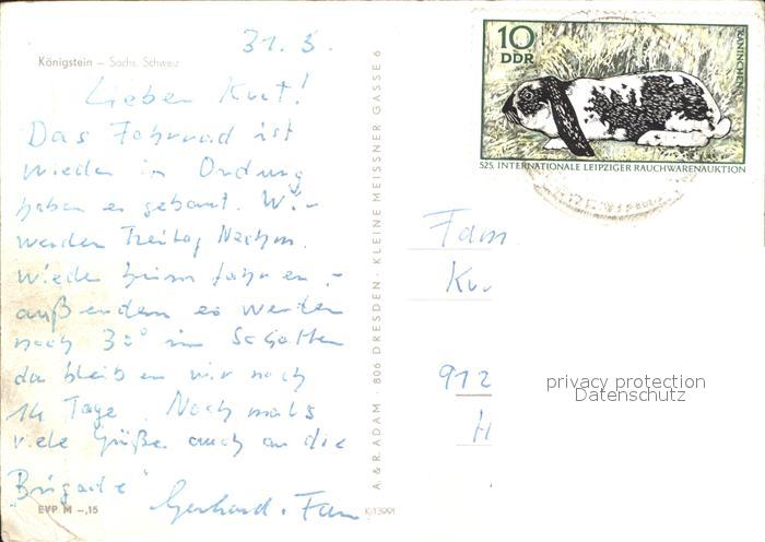 72382955 alte Postkarte Koenigstein Saechsische Schweiz postalisch gelaufen Erhaltung siehe scans KatCode: 11110014287190
