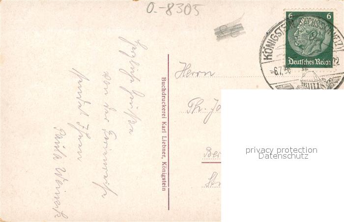 73697754 alte Postkarte Koenigstein Saechsische Schweiz Festung postalisch gelaufen Erhaltung siehe scans [LiesaD40] KatCode: 11110014287190