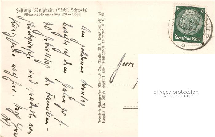 73817168 alte Postkarte Koenigstein Saechsische Schweiz Festung Fliegeraufnahme postalisch gelaufen Erhaltung siehe scans [WerneD78] KatCode: 11110014287190