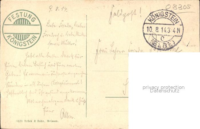 72277564 alte Postkarte Koenigstein Saechsische Schweiz Festung Georgenturm mit Hungerturm postalisch gelaufen Feldpost Erhaltung siehe scans KatCode: 11110014287190