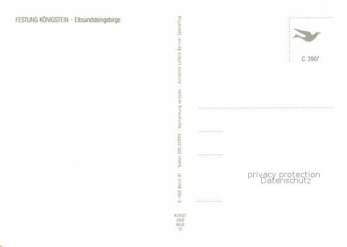 72850936 Koenigstein Saechsische Schweiz Festung Koenigstein Fliegeraufnahme postalisch nicht gelaufen Erhaltung siehe scans [NatalD47] KatCode: 11110014287190