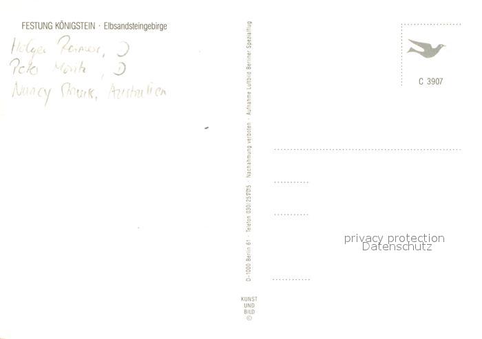 73714329 Koenigstein Saechsische Schweiz Festung Koenigstein Fliegeraufnahme postalisch nicht gelaufen Erhaltung siehe scans [WerneD78] KatCode: 11110014287190