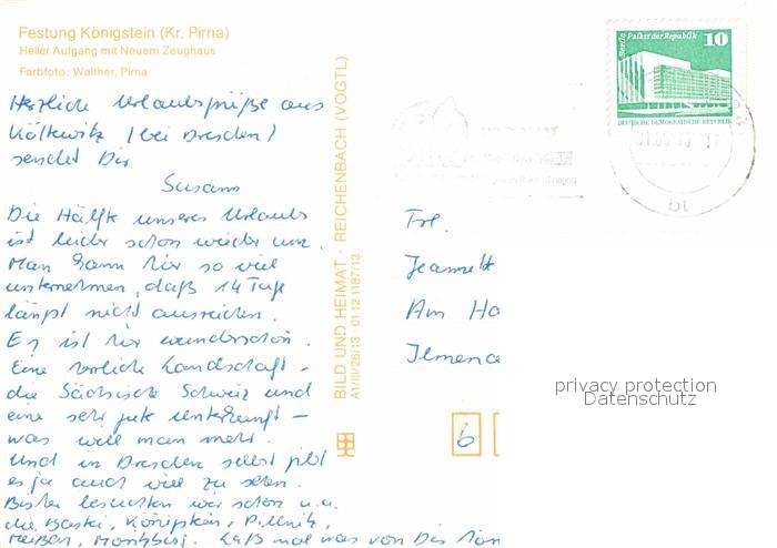 72629190 alte Postkarte Koenigstein Saechsische Schweiz Festung Koenigstein Heller Aufgang mit neuem Zeughaus postalisch gelaufen Erhaltung siehe scans [WerneD78] KatCode: 11110014287190
