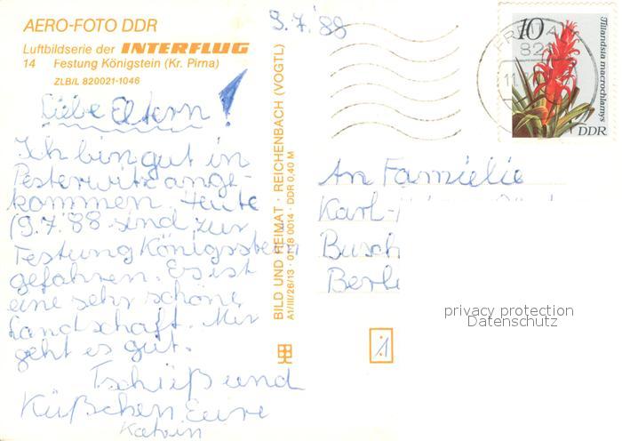 73716225 alte Postkarte Koenigstein Saechsische Schweiz Festung Luftbildserie der Interflug postalisch gelaufen Erhaltung siehe scans [FriedD77] KatCode: 11110014287190