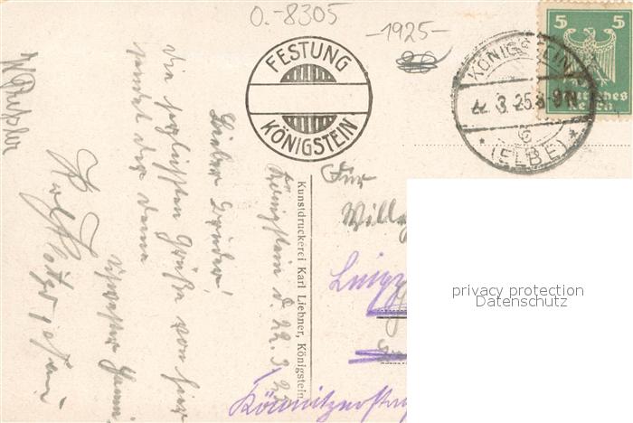 73697847 alte Postkarte Koenigstein Saechsische Schweiz Festung Nordseite postalisch gelaufen Erhaltung siehe scans [LiesaD40] KatCode: 11110014287190