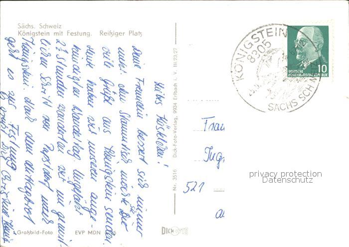 71927530 alte Postkarte Koenigstein Saechsische Schweiz Festung Reissiger Platz postalisch gelaufen Erhaltung siehe scans KatCode: 11110014287190
