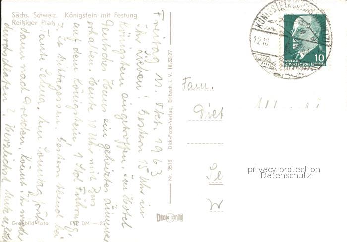 72475438 alte Postkarte Koenigstein Saechsische Schweiz Festung Reissinger Platz postalisch gelaufen Erhaltung siehe scans KatCode: 11110014287190