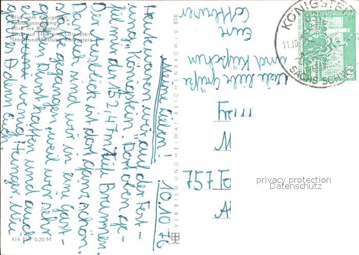 72324621 alte Postkarte Koenigstein Saechsische Schweiz Festungsaufgang Bielatal Elbe und Lilienstein postalisch gelaufen Erhaltung siehe scans KatCode: 11110014287190