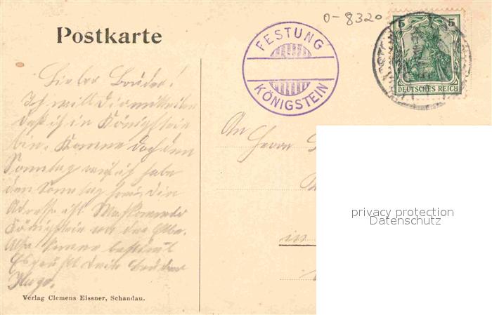 42620950 alte Postkarte Koenigstein Saechsische Schweiz Friedensburg Teilansicht postalisch gelaufen Erhaltung siehe scans [AndreD76] KatCode: 11110014287190