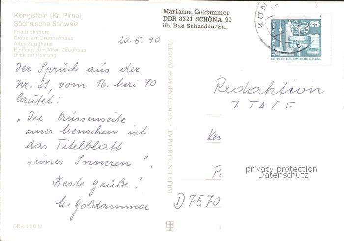 72379231 alte Postkarte Koenigstein Saechsische Schweiz Friedrichsburg Altes Zeughaus Festung postalisch gelaufen Erhaltung siehe scans KatCode: 11110014287190