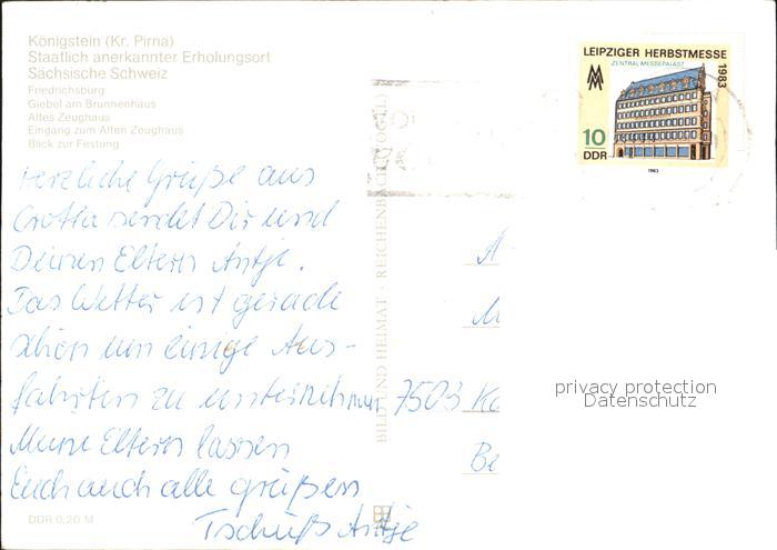 72315085 alte Postkarte Koenigstein Saechsische Schweiz Friedrichsburg Giebel Brunnenhaus Altes Zeughaus Eingang Festung postalisch gelaufen Erhaltung siehe scans KatCode: 11110014287190