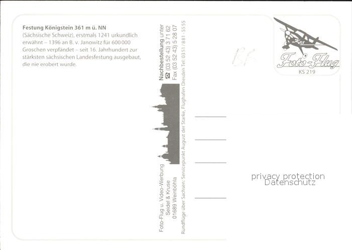 72580188 Koenigstein Saechsische Schweiz Luftaufnahme Festung Elbe postalisch nicht gelaufen Erhaltung siehe scans [KathaD79] KatCode: 11110014287190