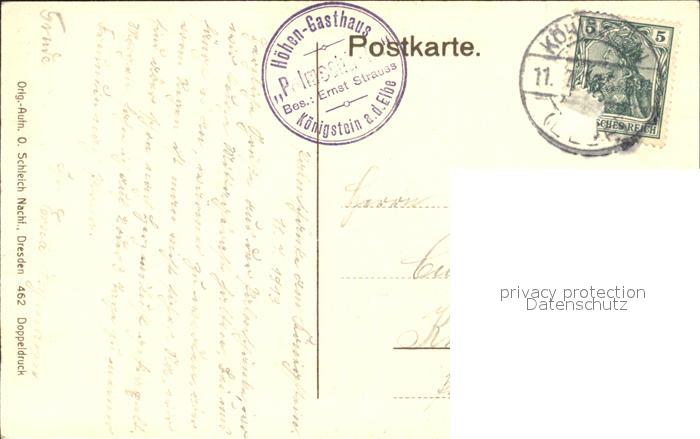 72278811 alte Postkarte Koenigstein Saechsische Schweiz Ortsansicht mit Kirche Festung Elbe postalisch gelaufen Erhaltung siehe scans KatCode: 11110014287190
