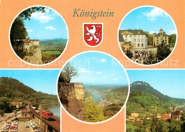 72961081 Koenigstein Saechsische Schweiz Panorama Elbtal Eisenbahn Gebaeude Wappen postalisch nicht gelaufen Erhaltung siehe scans [FriedD77] KatCode: 11110014287190