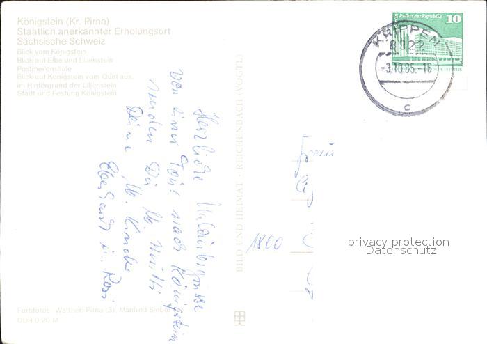 72279757 alte Postkarte Koenigstein Saechsische Schweiz Panorama Festung Elbe Lilienstein Postmeilensaeule postalisch gelaufen Erhaltung siehe scans KatCode: 11110014287190