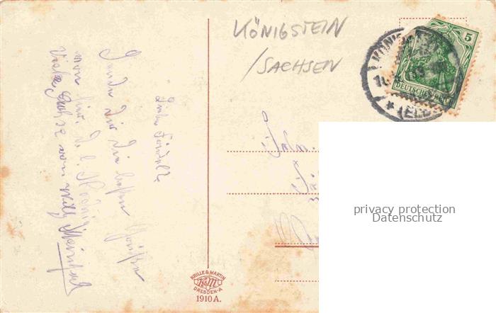 74036589 alte Postkarte Koenigstein Saechsische Schweiz Sachsen Friedrichsburg Georgenburg Hungerturm Koenigstein Suedseite Koenig Georg Denkmal Suedportal postalisch gelaufen Erhaltung siehe scans [WerneD78] KatCode: 11110014287190