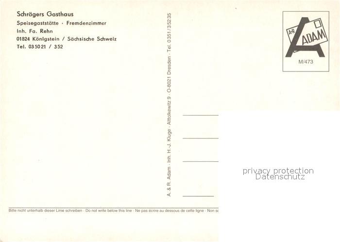 73644228 Koenigstein Saechsische Schweiz Schraegers Gasthaus Gaststaette Strassenpartie postalisch nicht gelaufen Erhaltung siehe scans [FriedD77] KatCode: 11110014287190