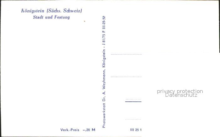 71906765 Koenigstein Saechsische Schweiz Stadt und Festung postalisch nicht gelaufen Erhaltung siehe scans KatCode: 11110014287190