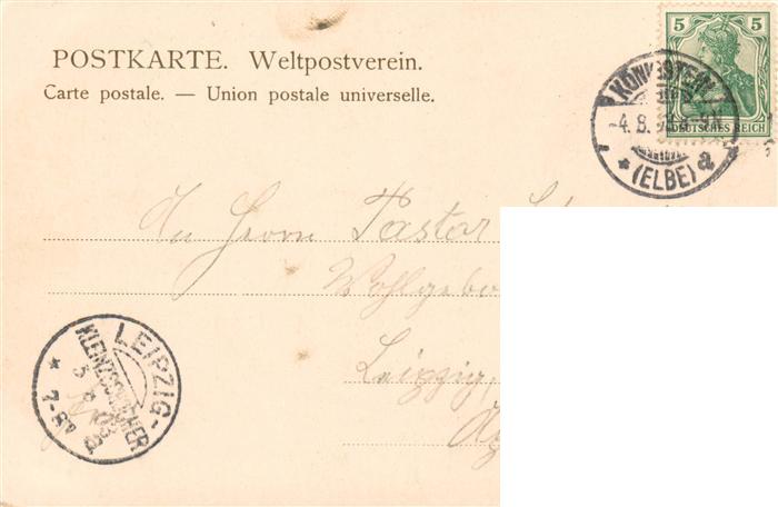 73883872 alte Postkarte Koenigstein Saechsische Schweiz Stadt und Festung postalisch gelaufen Erhaltung siehe scans [NoemiOhl] KatCode: 11110014287190