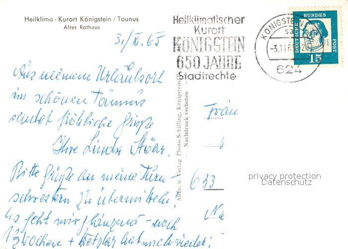 73254841 alte Postkarte Koenigstein Taunus Altes Rathaus Altstadt Fachwerkhaeuser postalisch gelaufen Erhaltung siehe scans [FriedD77] KatCode: 11110006434005