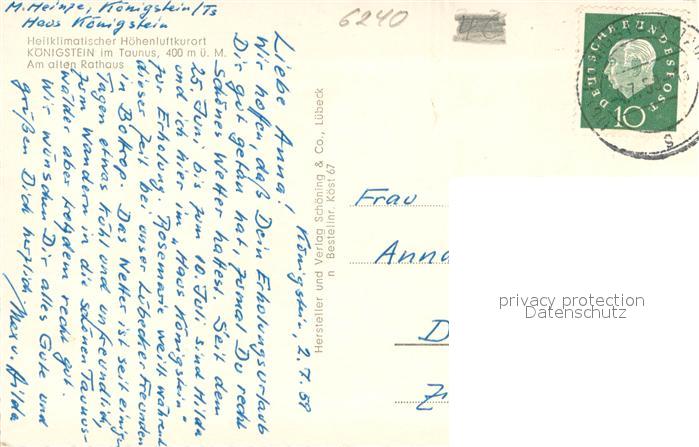 73706491 alte Postkarte Koenigstein Taunus Am alten Rathaus postalisch gelaufen Erhaltung siehe scans [WerneD78] KatCode: 11110006434005