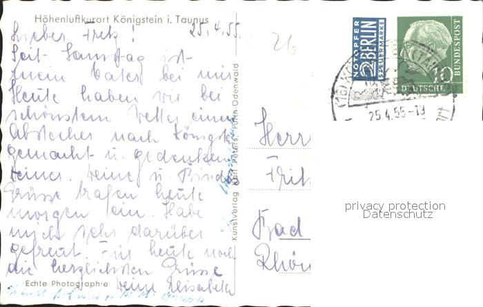 72118048 alte Postkarte Koenigstein Taunus Ansicht mit Burgruine postalisch gelaufen Erhaltung siehe scans KatCode: 11110006434005