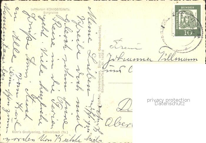 72196196 alte Postkarte Koenigstein Taunus Burgruine postalisch gelaufen Erhaltung siehe scans KatCode: 11110006434005