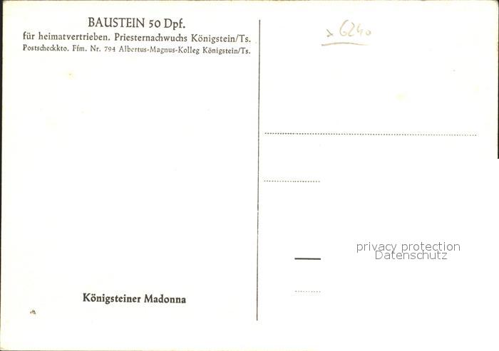 72118895 Koenigstein Taunus Figur Mutter der Vertriebenen Baustein postalisch nicht gelaufen Erhaltung siehe scans KatCode: 11110006434005