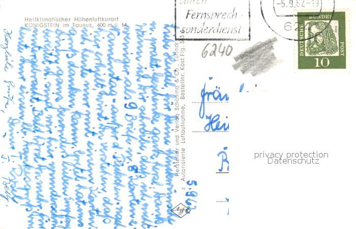 73283112 alte Postkarte Koenigstein Taunus Fliegeraufnahme postalisch gelaufen Erhaltung siehe scans [NatalD47] KatCode: 11110006434005