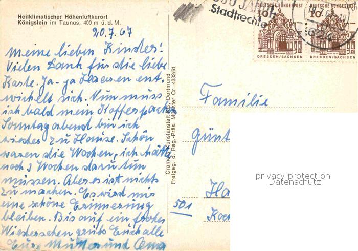 72919081 alte Postkarte Koenigstein Taunus Fliegeraufnahme postalisch gelaufen Erhaltung siehe scans [LiesaD40] KatCode: 11110006434005