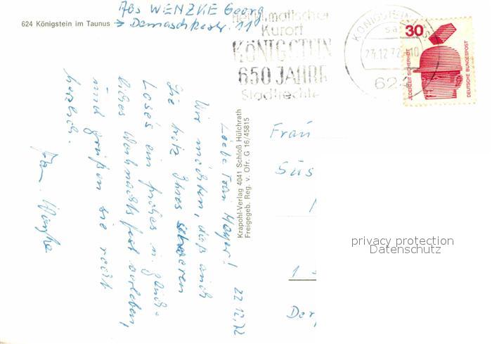 72845158 alte Postkarte Koenigstein Taunus Fliegeraufnahme postalisch gelaufen Erhaltung siehe scans [PaolaD17] KatCode: 11110006434005