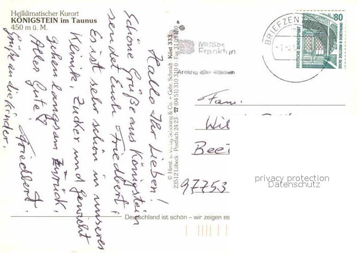 72845156 alte Postkarte Koenigstein Taunus Fliegeraufnahme postalisch gelaufen Erhaltung siehe scans [PaolaD17] KatCode: 11110006434005