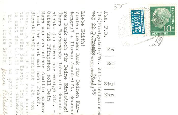 73897753 alte Postkarte Koenigstein Taunus Fliegeraufnahme postalisch gelaufen Erhaltung siehe scans [WerneD78] KatCode: 11110006434005