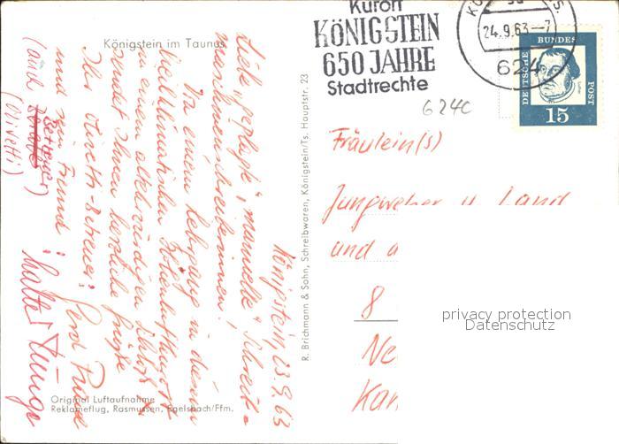 41581323 Koenigstein Taunus Fliegeraufnahme postalisch gelaufen Erhaltung siehe scans Alte Ansichtskarte Postkarte alte Postkarte Stef Katcode 11110006434005