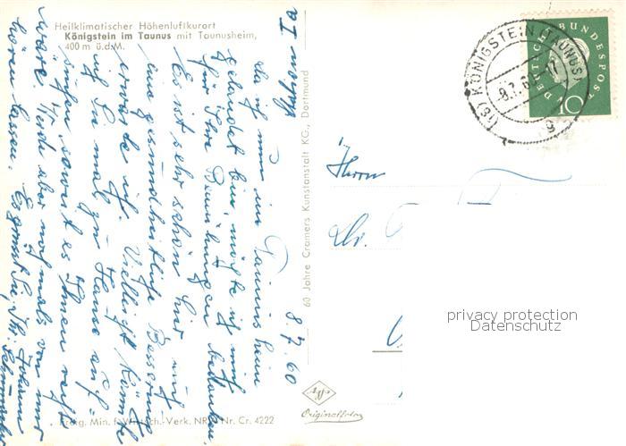 73784588 alte Postkarte Koenigstein Taunus Fliegeraufnahme Gesamtansicht m.Taunusheim postalisch gelaufen Erhaltung siehe scans [LiesaD40] KatCode: 11110006434005
