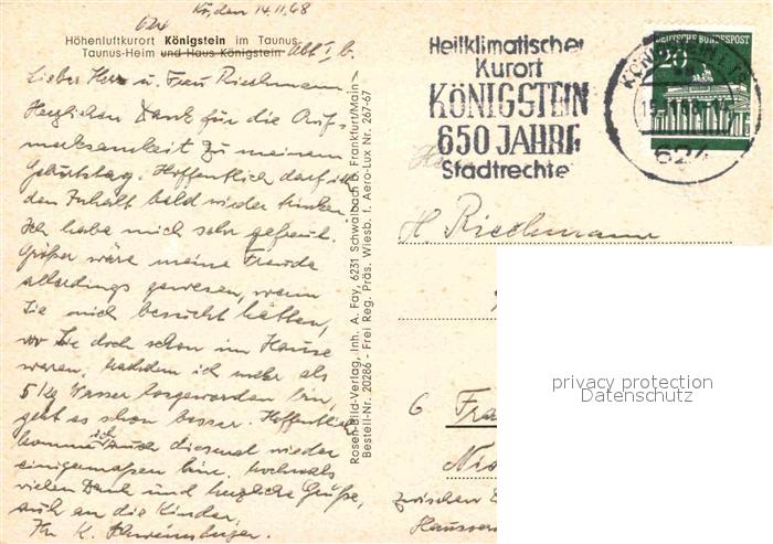 72757650 alte Postkarte Koenigstein Taunus Fliegeraufnahme Taunus Heim postalisch gelaufen Erhaltung siehe scans [WerneD78] KatCode: 11110006434005