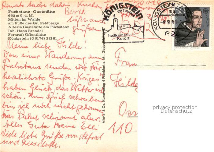 73642164 alte Postkarte Koenigstein Taunus Fuchstanz Gaststaette mit Altkoenig postalisch gelaufen Erhaltung siehe scans [WerneD78] KatCode: 11110006434005