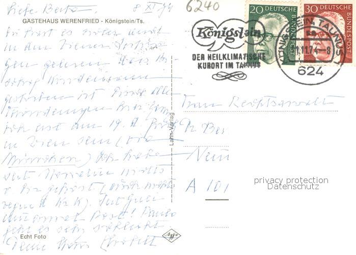 73706662 alte Postkarte Koenigstein Taunus Gaestehaus Werenfried postalisch gelaufen Erhaltung siehe scans [WerneD78] KatCode: 11110006434005