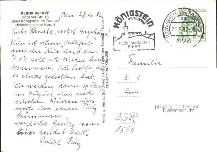 71936232 alte Postkarte Koenigstein Taunus Klinik der KVB postalisch gelaufen Erhaltung siehe scans KatCode: 11110006434005