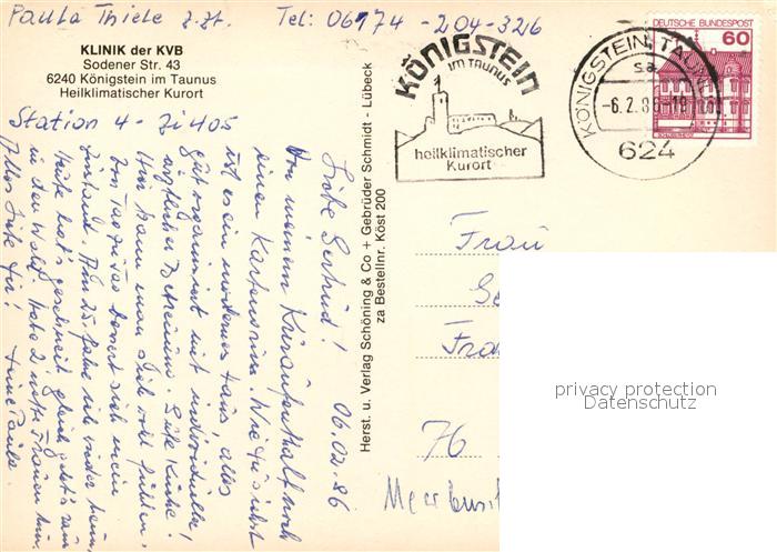 73323137 alte Postkarte Koenigstein Taunus Klinik der KVB postalisch gelaufen Erhaltung siehe scans [LiesaD40] KatCode: 11110006434005