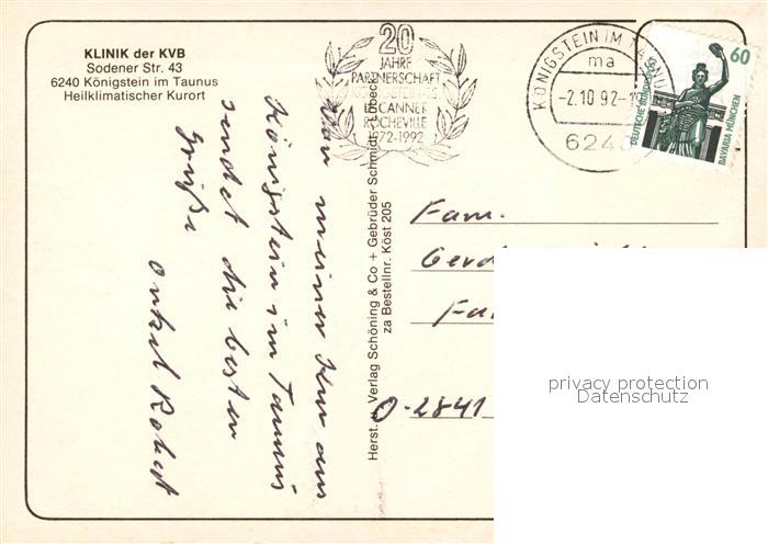 73119944 alte Postkarte Koenigstein Taunus Klinik der KVB postalisch gelaufen Erhaltung siehe scans [NatalD47] KatCode: 11110006434005