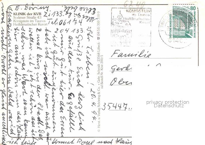 72867658 alte Postkarte Koenigstein Taunus Klinik der KVB postalisch gelaufen Erhaltung siehe scans [WerneD78] KatCode: 11110006434005