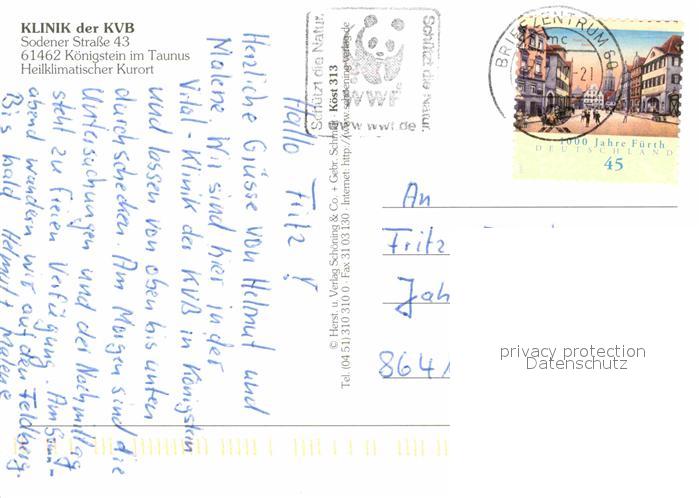 72782800 alte Postkarte Koenigstein Taunus Klinik der KVB Foyer Hallenbad Aufenthaltsraum postalisch gelaufen Erhaltung siehe scans [WerneD78] KatCode: 11110006434005