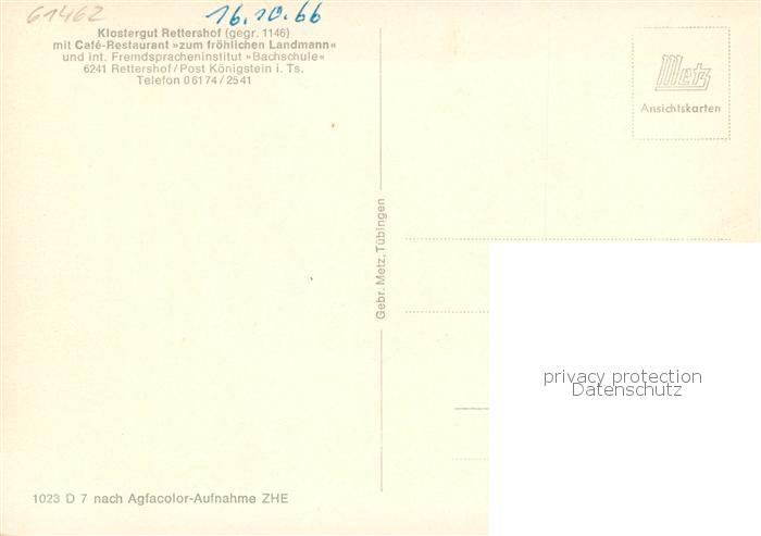 73767853 Koenigstein Taunus Klostergut Rettershof Cafe Restaurant Zum froehlichen Landmann postalisch nicht gelaufen Erhaltung siehe scans [FriedD77] KatCode: 11110006434005