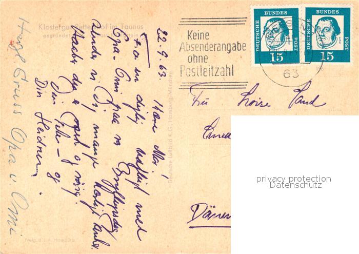 73228319 alte Postkarte Koenigstein Taunus Klostergut Rettershof Fliegeraufnahme postalisch gelaufen Erhaltung siehe scans [FriedD77] KatCode: 11110006434005