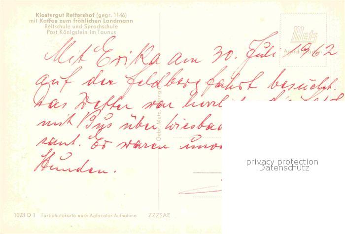 72918555 Koenigstein Taunus Klostergut Rettershof mit Kaffee zum froehlichen Landmann Reitschule Sprachschule postalisch nicht gelaufen Erhaltung siehe scans [FriedD77] KatCode: 11110006434005