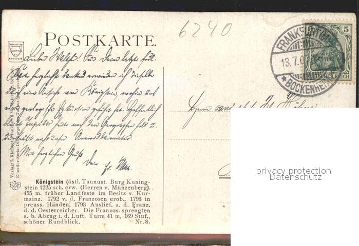 41545984 Koenigstein Taunus Künstlerkarte Panorama mit Burg Wappen KatCode 11110006434005