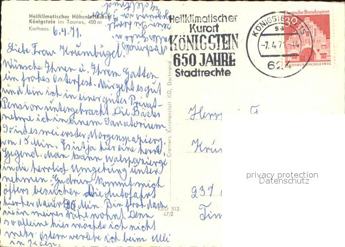 72549750 alte Postkarte Koenigstein Taunus Kurhaus postalisch gelaufen Erhaltung siehe scans [AndreD76 kv022box] KatCode: 11110006434005
